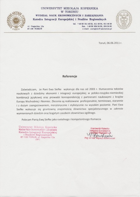 Uniwersytet Mikołaja Kopernika w Toruniu, Katedra Integracji Europejskiej i Studiów Regionalnych